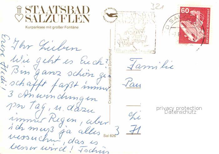 72615723 alte Postkarte Bad Salzuflen Kurparksee mit grosser Fontaene postalisch gelaufen Erhaltung siehe scans [WerneD78] KatCode: 11110005766008