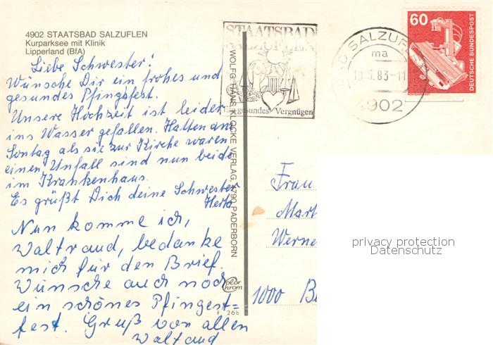 73783469 alte Postkarte Bad Salzuflen Kurparksee mit Klinik Lipperland postalisch gelaufen Erhaltung siehe scans [FriedD77] KatCode: 11110005766008