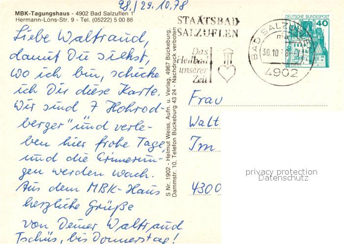 73324250 alte Postkarte Bad Salzuflen MBK Tagungshaus postalisch gelaufen Erhaltung siehe scans [FriedD77] KatCode: 11110005766008