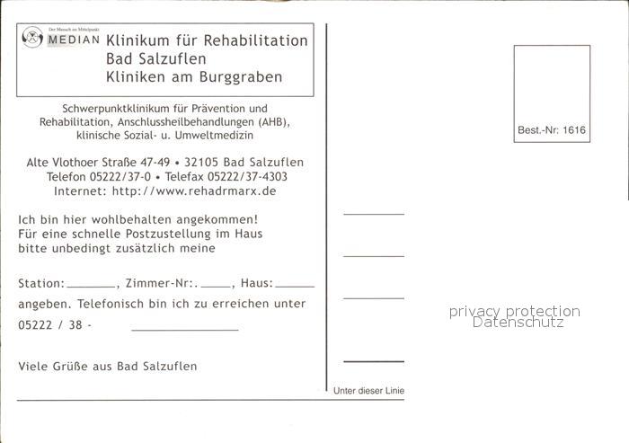 72583480 Bad Salzuflen Median Klinikum fuer Rehabilitation postalisch nicht gelaufen Werbekarte (keine Postkarte) Erhaltung siehe scans [LiesaD40] KatCode: 11110005766008