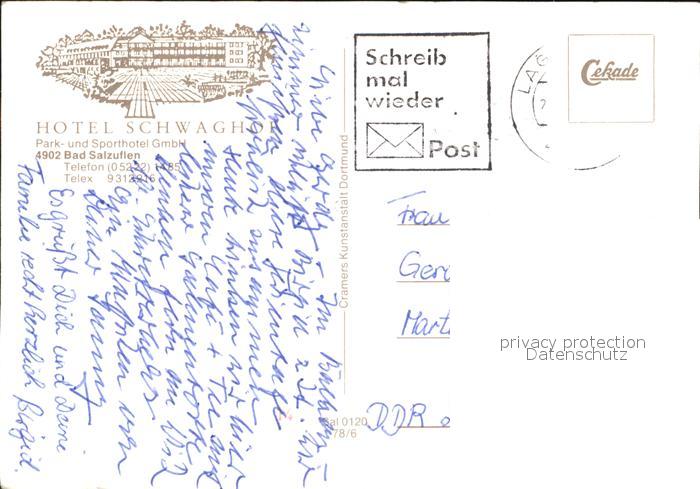 72533578 alte Postkarte Bad Salzuflen Park und Sporthotel Schwaighof Gastraum Foyer postalisch gelaufen Erhaltung siehe scans [WerneD78 kt116box] KatCode: 11110005766008