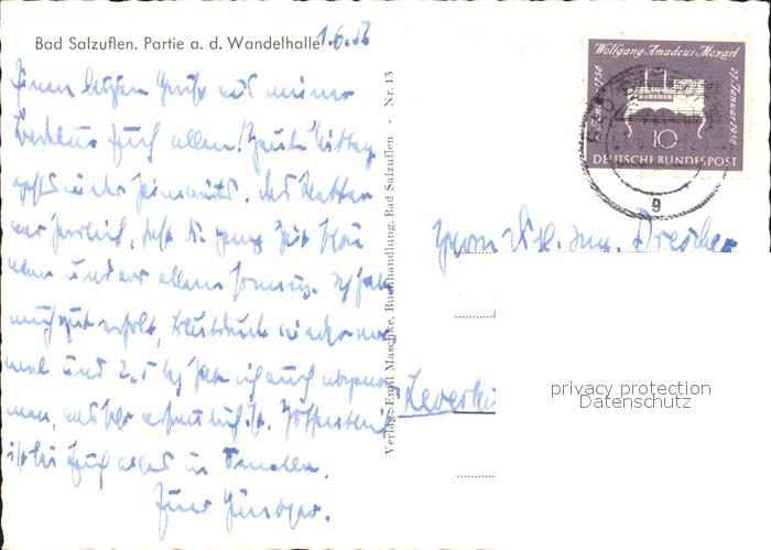 72319756 alte Postkarte Bad Salzuflen Partie an der Wandelhalle postalisch gelaufen Erhaltung siehe scans KatCode: 11110005766008
