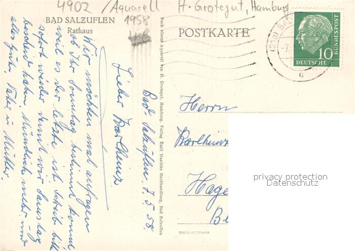 73691728 alte Postkarte Bad Salzuflen Rathaus postalisch gelaufen Erhaltung siehe scans [WerneD78] KatCode: 11110005766008