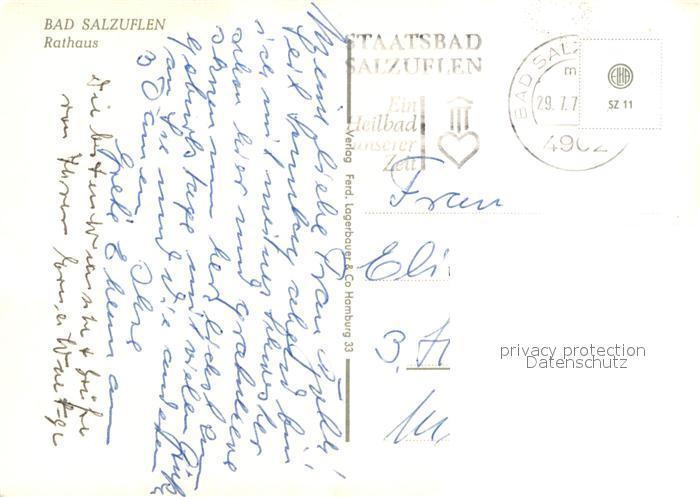 72987857 alte Postkarte Bad Salzuflen Rathaus Apotheke Tuerschild postalisch gelaufen Erhaltung siehe scans [FriedD77] KatCode: 11110005766008