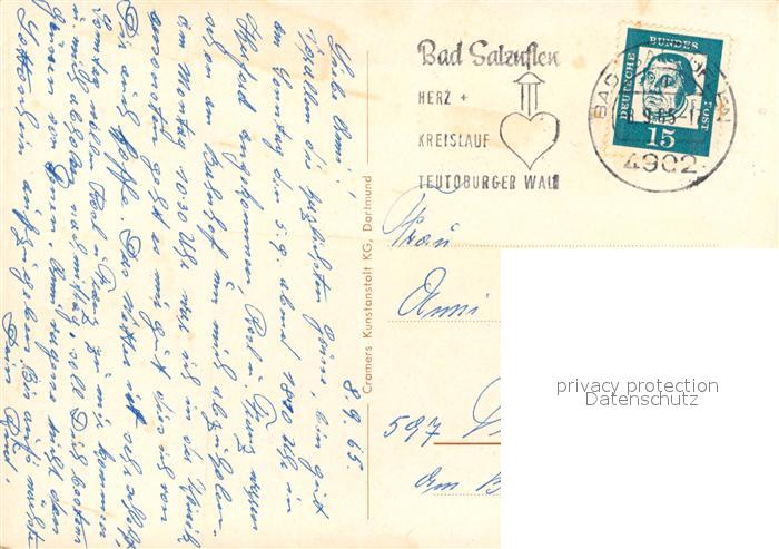 73308263 alte Postkarte Bad Salzuflen Rathaus Leopoldsprudel Am Gradierwerk Uhren Turm Steege Kurklinik der LVA Kurparksee postalisch gelaufen Erhaltung siehe scans [WerneD78] KatCode: 11110005766008