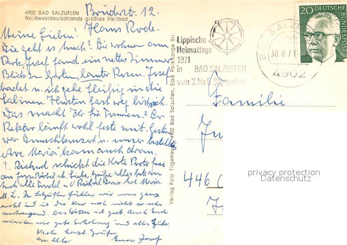 72982760 alte Postkarte Bad Salzuflen Rathaus Leopoldsprudel See Kurklinik Trinkbrunnen Kurhaus Badehaeuser Konzerthaeuser Fachwerkhaeuser postalisch gelaufen Erhaltung siehe scans [FriedD77] KatCode: 11110005766008