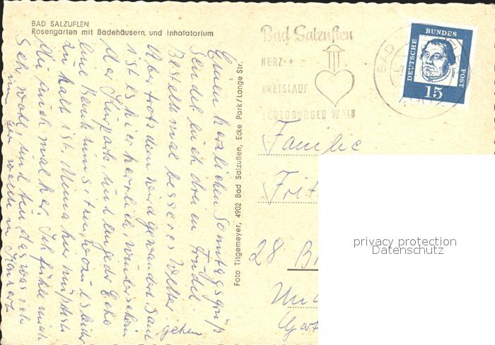 72202654 alte Postkarte Bad Salzuflen Rosengarten Badehaeuser Inhalatorium postalisch gelaufen Erhaltung siehe scans KatCode: 11110005766008