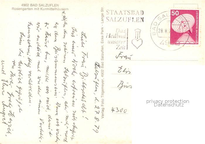 73311984 alte Postkarte Bad Salzuflen Rosengarten Kurmittelhaus postalisch gelaufen Erhaltung siehe scans [NatalD47] KatCode: 11110005766008
