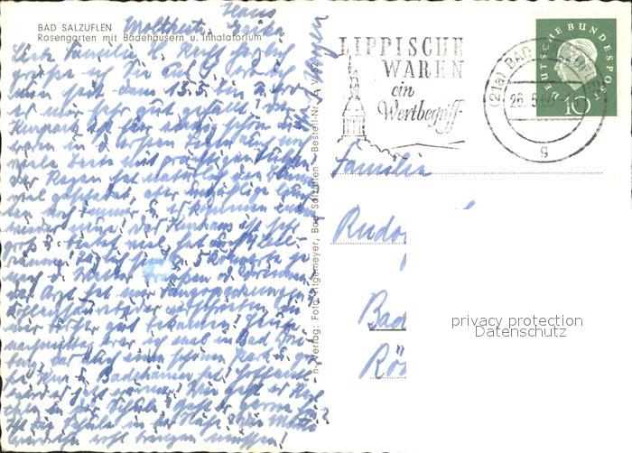 72201035 alte Postkarte Bad Salzuflen Rosengarten mit Badehaeusern postalisch gelaufen Erhaltung siehe scans KatCode: 11110005766008