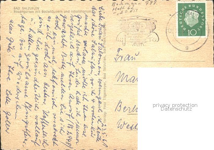 72204258 alte Postkarte Bad Salzuflen Rosengarten mit Badehaeusern und Inhalatorium postalisch gelaufen Erhaltung siehe scans KatCode: 11110005766008