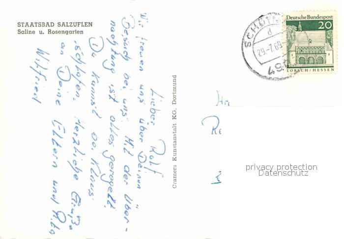72705788 alte Postkarte Bad Salzuflen Saline Rosengarten postalisch gelaufen Erhaltung siehe scans [AndreD76] KatCode: 11110005766008