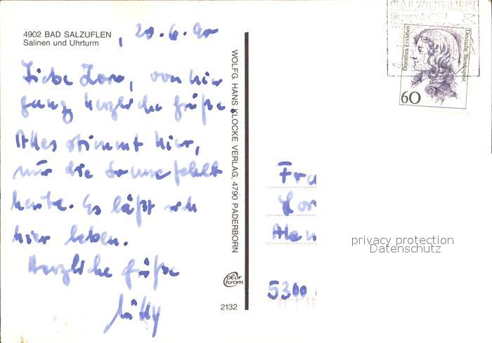 72449285 alte Postkarte Bad Salzuflen Salinen und Uhrturm postalisch gelaufen Erhaltung siehe scans KatCode: 11110005766008