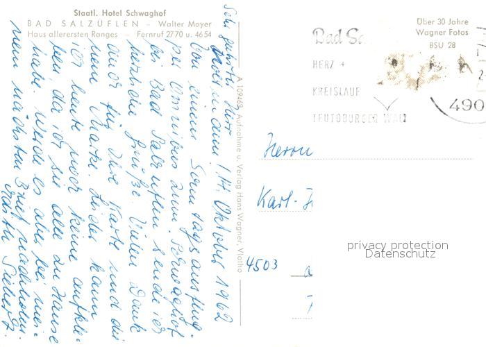 73102624 alte Postkarte Bad Salzuflen Staatliches Hotel Schwaghof postalisch gelaufen Erhaltung siehe scans [KathaD81] KatCode: 11110005766008