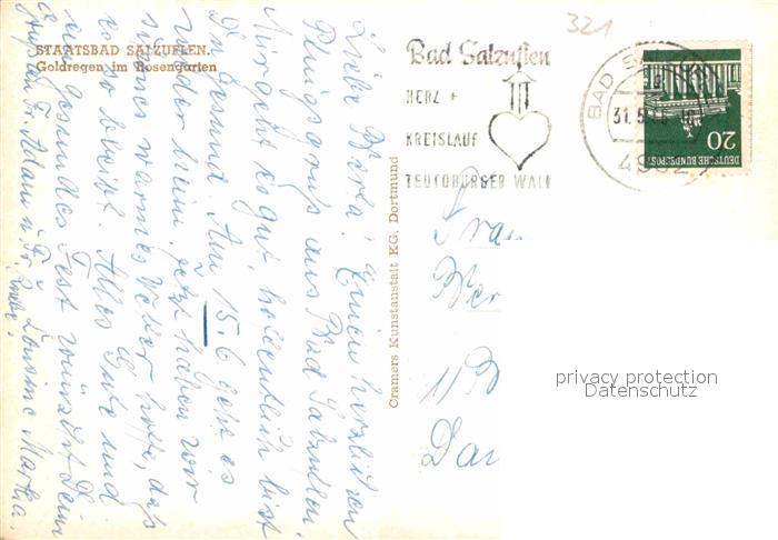 72615718 alte Postkarte Bad Salzuflen Staatsbad Goldregen im Rosengarten postalisch gelaufen Erhaltung siehe scans [WerneD78] KatCode: 11110005766008