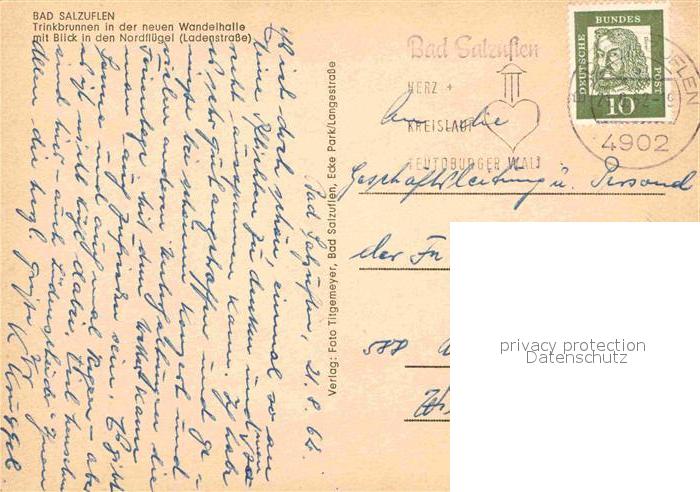 72694707 alte Postkarte Bad Salzuflen Trinkbrunnen in Wandelhalle postalisch gelaufen Erhaltung siehe scans [LiesaD40] KatCode: 11110005766008