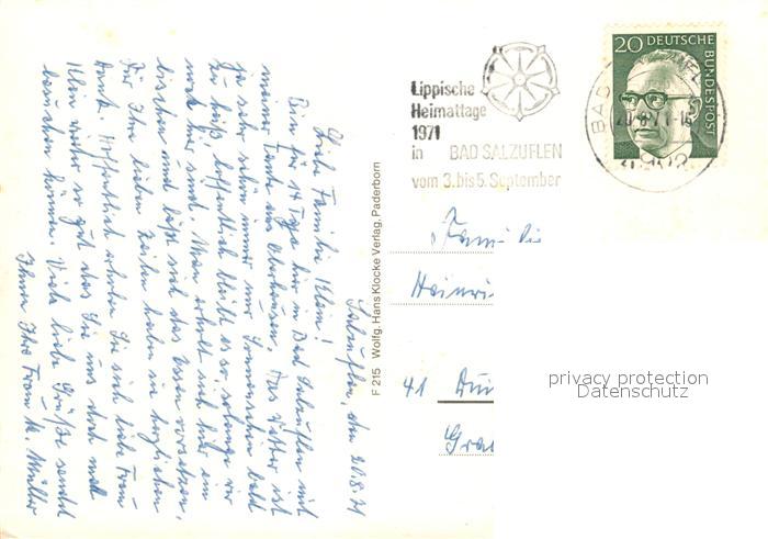73017808 alte Postkarte Bad Salzuflen Uhrturm Konzerthalle Wandelhalle Kurhaus postalisch gelaufen Erhaltung siehe scans [WerneD78] KatCode: 11110005766008