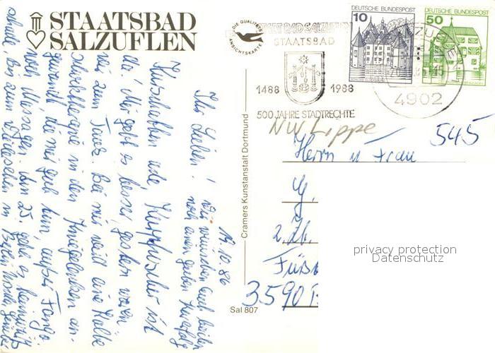 72934003 alte Postkarte Bad Salzuflen Uhrturm Kurpark Kurhaus Leopoldsprudel Wandelhalle postalisch gelaufen Erhaltung siehe scans [WerneD78] KatCode: 11110005766008