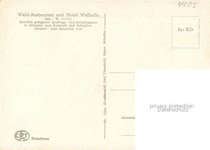 43367615 Bad Salzuflen Waldrestaurant Hotel Walhalla Photobrom postalisch nicht gelaufen Erhaltung siehe scans [FriedD77] KatCode: 11110005766008