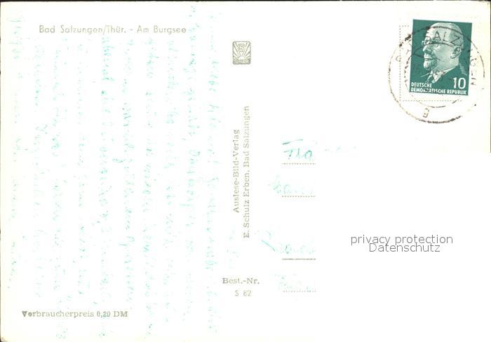 72365541 alte Postkarte Bad Salzungen Am Burgsee postalisch gelaufen Erhaltung siehe scans KatCode: 11110016063003