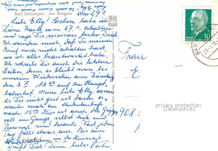 72704186 alte Postkarte Bad Salzungen Am Burgsee postalisch gelaufen Erhaltung siehe scans [AndreD76] KatCode: 11110016063003