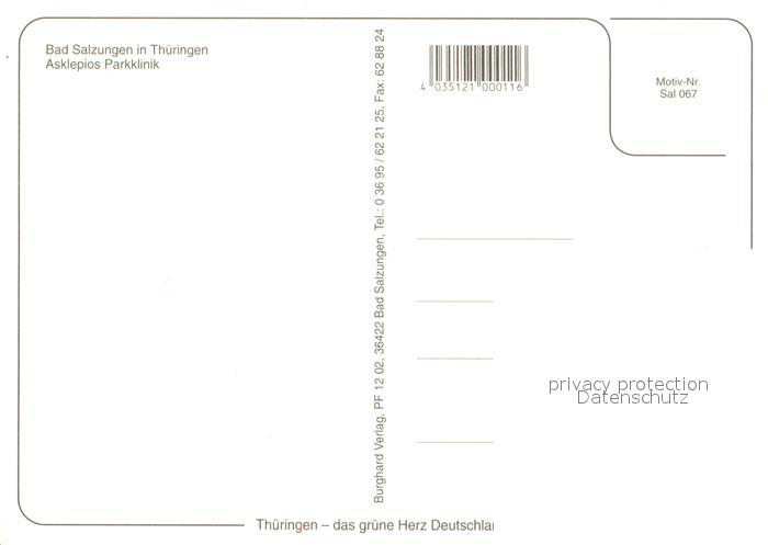 73734575 Bad Salzungen Asklepios Parkklinik postalisch nicht gelaufen Erhaltung siehe scans [FriedD77] KatCode: 11110016063003