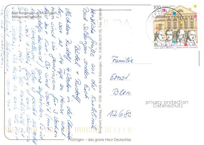 73859564 alte Postkarte Bad Salzungen Asklepios Parkklinik postalisch gelaufen Erhaltung siehe scans [FriedD77] KatCode: 11110016063003