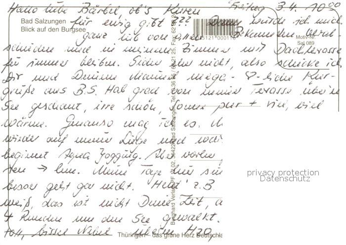 73703711 Bad Salzungen Blick auf den Burgsee postalisch nicht gelaufen Fliegeraufnahme Erhaltung siehe scans [FriedD77] KatCode: 11110016063003