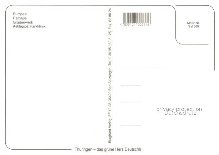 73230511 Bad Salzungen Burgsee Rathaus Gradierwerk Asklepos Parkklinik postalisch nicht gelaufen Erhaltung siehe scans [KathaD81] KatCode: 11110016063003