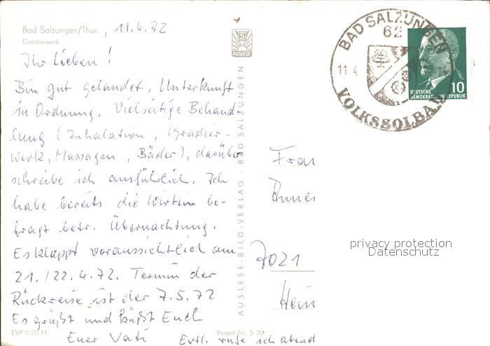 72170307 alte Postkarte Bad Salzungen Gradierwerk postalisch gelaufen Erhaltung siehe scans KatCode: 11110016063003