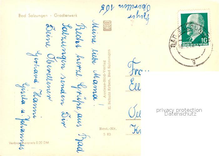 72966705 alte Postkarte Bad Salzungen Gradierwerk Brunnen postalisch gelaufen Erhaltung siehe scans [FriedD77] KatCode: 11110016063003