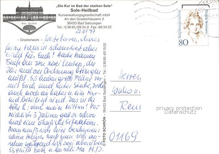 72352669 alte Postkarte Bad Salzungen Gradierwerk Sole Heilbad postalisch gelaufen Erhaltung siehe scans KatCode: 11110016063003