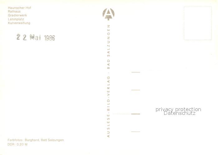 72972923 Bad Salzungen Haunscher Hof Rathaus Gradierwerk Leninplatz Kurverwaltung postalisch nicht gelaufen Erhaltung siehe scans [FriedD77] KatCode: 11110016063003