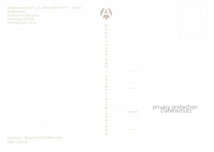 72616708 Bad Salzungen Kindersanatorium Dr Benjamin Gradierwerk Kurhaus Burgsee Sulzberger Str Henneberger Haus postalisch nicht gelaufen Erhaltung siehe scans [WerneD78] KatCode: 11110016063003