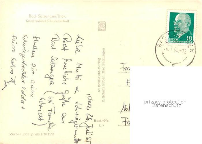 73111785 alte Postkarte Bad Salzungen Kindersolbad Charlottenhall postalisch gelaufen Erhaltung siehe scans [NatalD47] KatCode: 11110016063003