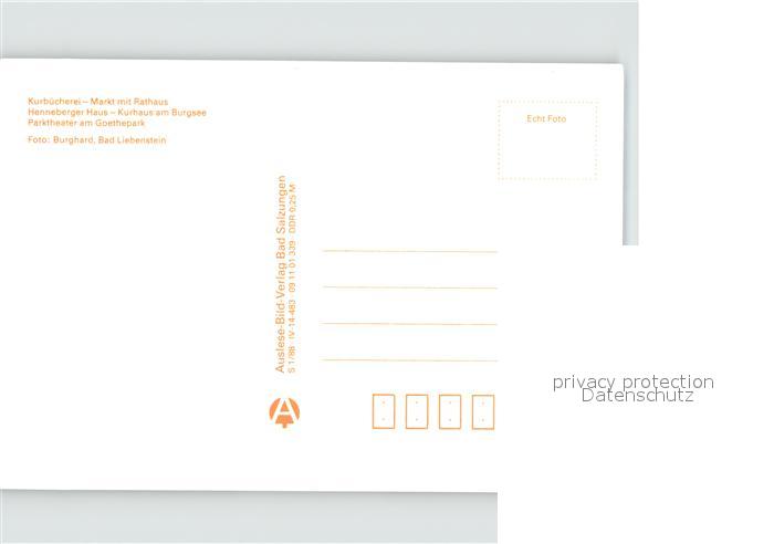 71965858 Bad Salzungen Kurbuecherei Markt Rathaus Hennenberger Haus Kurhaus Burgsee postalisch nicht gelaufen Erhaltung siehe scans KatCode: 11110016063003