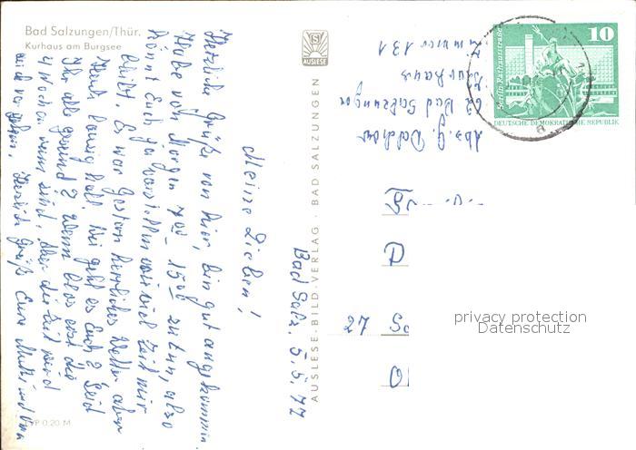 72606799 alte Postkarte Bad Salzungen Kurhaus am Burgsee postalisch gelaufen Erhaltung siehe scans [LiesaD40] KatCode: 11110016063003