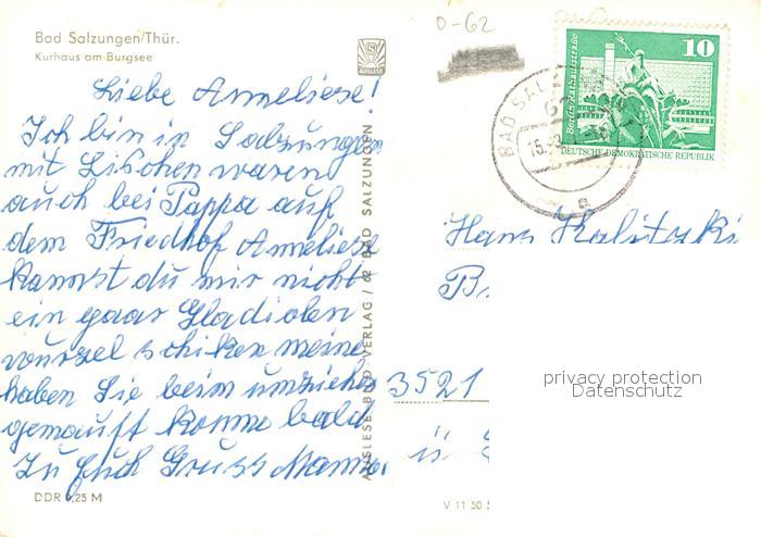 72982799 alte Postkarte Bad Salzungen Kurhaus am Burgsee postalisch gelaufen Erhaltung siehe scans [WerneD78] KatCode: 11110016063003