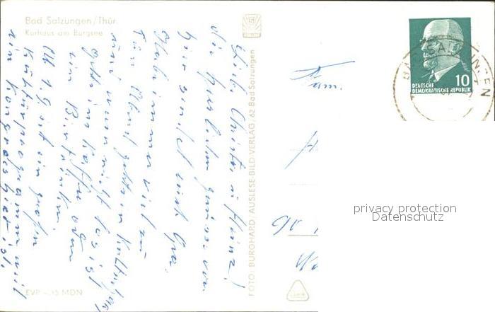 72327220 alte Postkarte Bad Salzungen Kurhaus am Burgsee Schwaene postalisch gelaufen Erhaltung siehe scans KatCode: 11110016063003