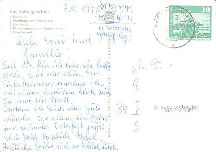 72138158 alte Postkarte Bad Salzungen Kurhaus Hochhaus Leninplatz Markt Kindersanatorium Charlottenhall Gradierwerk postalisch gelaufen Erhaltung siehe scans KatCode: 11110016063003
