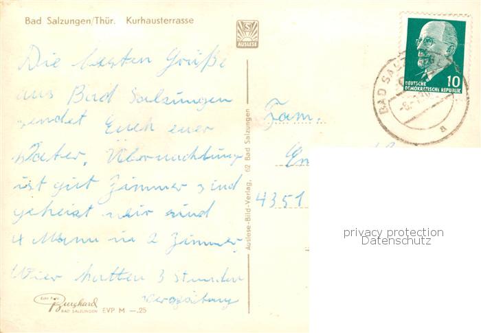 73842818 alte Postkarte Bad Salzungen Kurhausterrasse postalisch gelaufen Erhaltung siehe scans [FriedD77] KatCode: 11110016063003