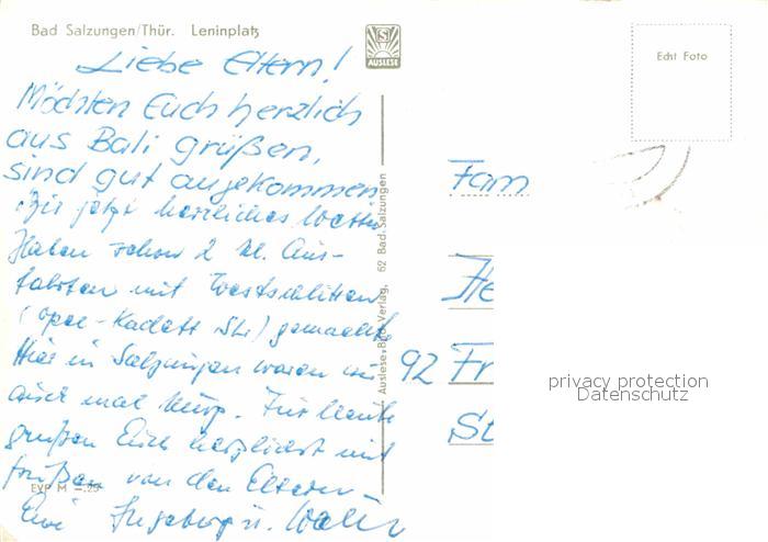 72704467 alte Postkarte Bad Salzungen Leninplatz postalisch gelaufen Erhaltung siehe scans [FriedD77] KatCode: 11110016063003