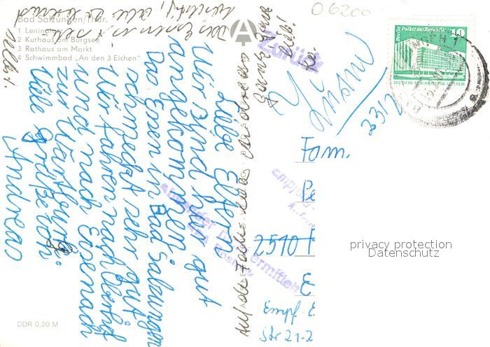 72936430 alte Postkarte Bad Salzungen Leninplatz Kurhaus am Burgsee Rathaus Markt Schwimmbad Wappen postalisch gelaufen Erhaltung siehe scans [FriedD77] KatCode: 11110016063003