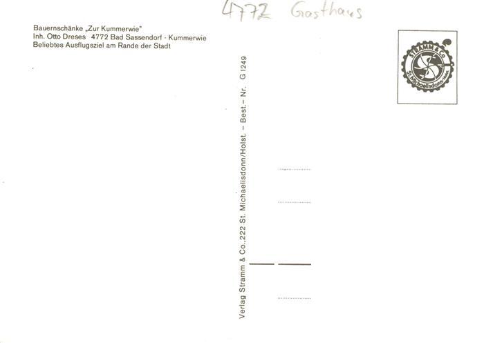 73893241 Bad Sassendorf Bauernschaenke Zur Kummerwie postalisch nicht gelaufen Erhaltung siehe scans [WerneD78] KatCode: 11110005974008