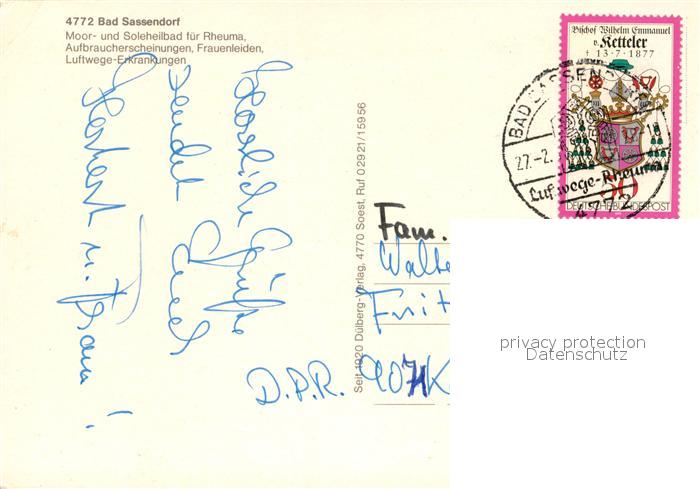 73041180 alte Postkarte Bad Sassendorf Bewegungszentrum Freibad postalisch gelaufen Erhaltung siehe scans [WerneD78] KatCode: 11110005974008
