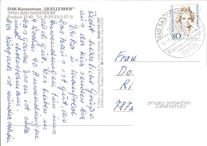 72420698 alte Postkarte Bad Sassendorf DAK Kurzentrum Quellenhof Fliegeraufnahme postalisch gelaufen Erhaltung siehe scans KatCode: 11110005974008