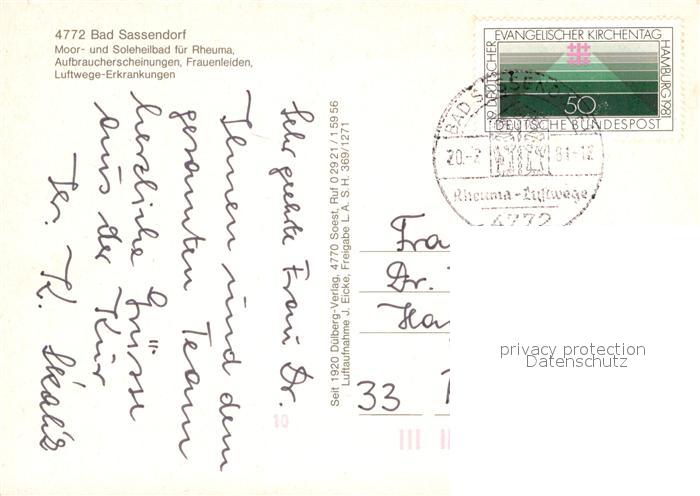 72939550 alte Postkarte Bad Sassendorf Fliegeraufnahme postalisch gelaufen Erhaltung siehe scans [KathaD81] KatCode: 11110005974008