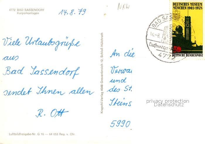 72935110 alte Postkarte Bad Sassendorf Fliegeraufnahme Kurpatkanlagen postalisch gelaufen Erhaltung siehe scans [LiesaD40] KatCode: 11110005974008