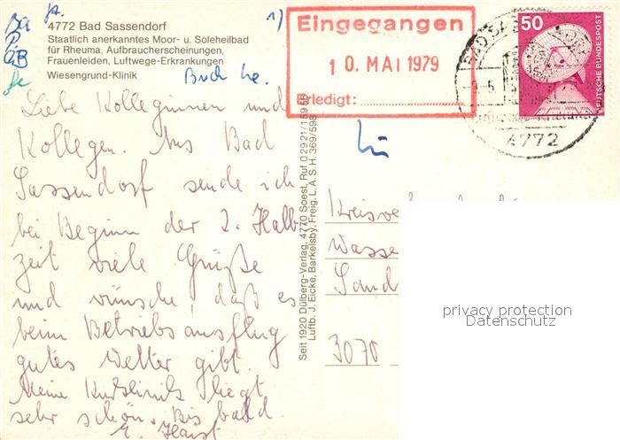 73106425 alte Postkarte Bad Sassendorf Fliegeraufnahme Wiesengrund Klinik postalisch gelaufen Erhaltung siehe scans [KathaD81] KatCode: 11110005974008