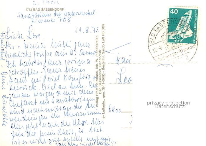 73723682 alte Postkarte Bad Sassendorf Fliegeraufnahme postalisch gelaufen Erhaltung siehe scans [WerneD78] KatCode: 11110005974008