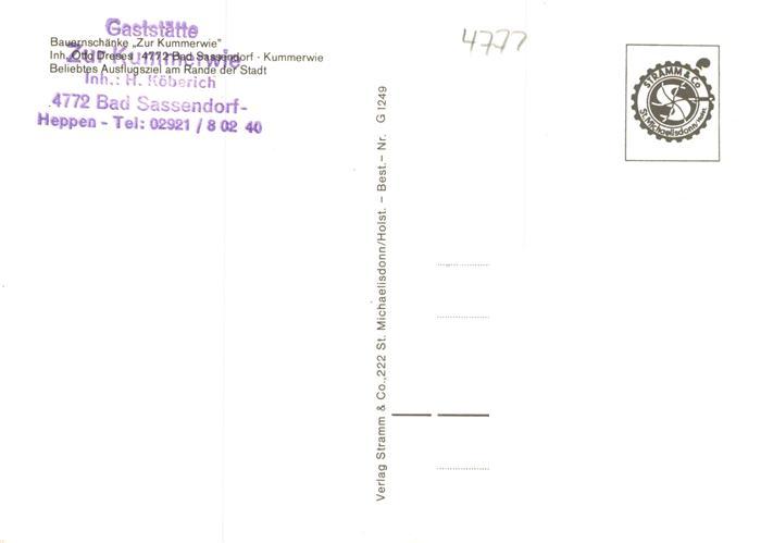 73873936 Bad Sassendorf Gasthaus Bauernschaenke zur Kummerwie postalisch nicht gelaufen Erhaltung siehe scans [FriedD77] KatCode: 11110005974008